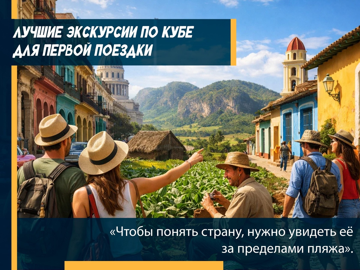 ✅ Первая поездка на Кубу редко ограничивается только отдыхом у океана. Остров раскрывается через его города, природу и атмосферу. ✅ Гавана — обязательная экскурсия: колониальные улицы, ретро-автомобили и набережная Малекон создают ощущение путешествия во времени. ✅ Долина Виньялес — одно из самых живописных мест страны: табачные плантации, известняковые холмы и настоящая сельская Куба. ✅ Тринидад — город-музей с мощёными улицами, яркими домами и музыкой на площадях. Здесь особенно чувствуется колониальная история острова. ✅ Кайо-Бланко или острова рядом с Варадеро — идеальная морская экскурсия: белый песок, бирюзовая вода и снорклинг среди кораллов. Первая поездка на Кубу обычно становится началом любви к стране. Экскурсии помогают увидеть не только пляжи, но и настоящую душу острова. Тур1 | поиск туров → https://tur-1.ru