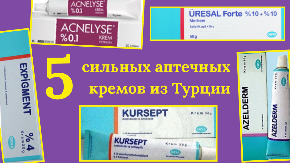 Турецкие аптеки часто становятся настоящим открытием для тех, кто следит за кожей: здесь можно найти действующие дерматологические средства, которые в других странах требуют рецепта или стоят очень дорого. В этом обзоре разберём 5 популярных кремов, которые реально помогают при пигментации, плотных или ороговевших участках кожи, сильной потливости и неприятном запахе, акне или проблемной коже, и которые часто рекомендуют привезти из Турции: Expigment, Acnelyse и три крема бренда Orva — Uresal Forte, Azelderm и Kursept.