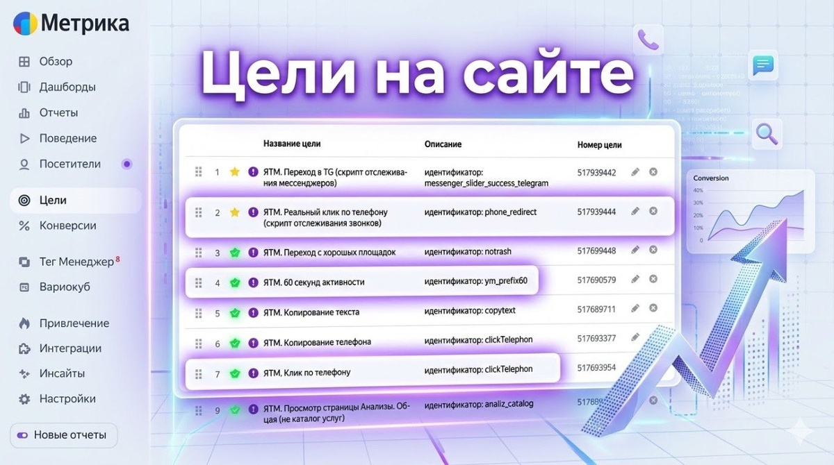 Знаете, что самое пугающее при аудите нового проекта? Нет, не скромные бюджеты. А когда ты открываешь кабинет крупного, статусного бренда и понимаешь: бизнес летит абсолютно «вслепую». Недавно ко мне зашел клиент — одна из сильнейших медицинских сетей в городе. Сайт мощный, огромный, явно заточенный под SEO (хотя до первых позиций в выдаче ребята никак не могли дотянуть). Первым делом иду «под капот». Открываю Яндекс Метрику и... застываю в недоумении. 😱 На гигантском ресурсе настроено всего 3 цели: 1️⃣ Отправка формы (которой на сайте физически нет). 2️⃣ Переход в мессенджер. 3️⃣ Клик по телефону. Всё. Три цели, одна из которых — фантом. Как алгоритмы Яндекса должны находить нам целевых пациентов? Ответ: никак. Ситуация осложнялась тем, что у клиента категоричная позиция: CRM-системы нет и не будет. Это решение владельца. Для маркетолога это означает одно: нам нужна «космическая» веб-аналитика, чтобы отсекать мусор и ботов прямо на входе. Что я сделала? Я обратилась к Яндекс Т