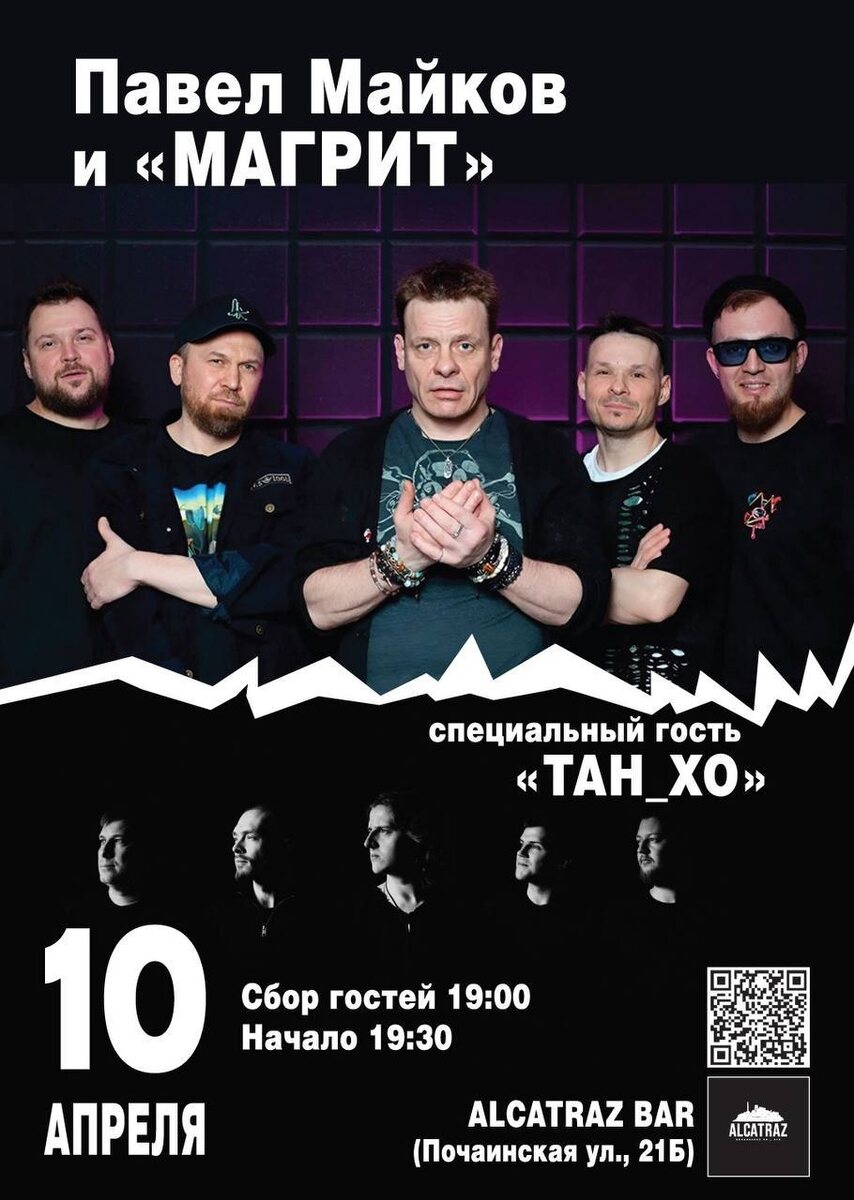 Группа «Магрит» — представители «performance-rock». За все свои музыкальные эксперименты эти парни отвечают вместе. 🔥 На разогреве выступит нижегородская группа ТАН_ХО! • 10 апреля в 19:00 в ALCATRAZ BAR (Почаинская ул., 21Б) • Подробности — тут. 💬 МАХ