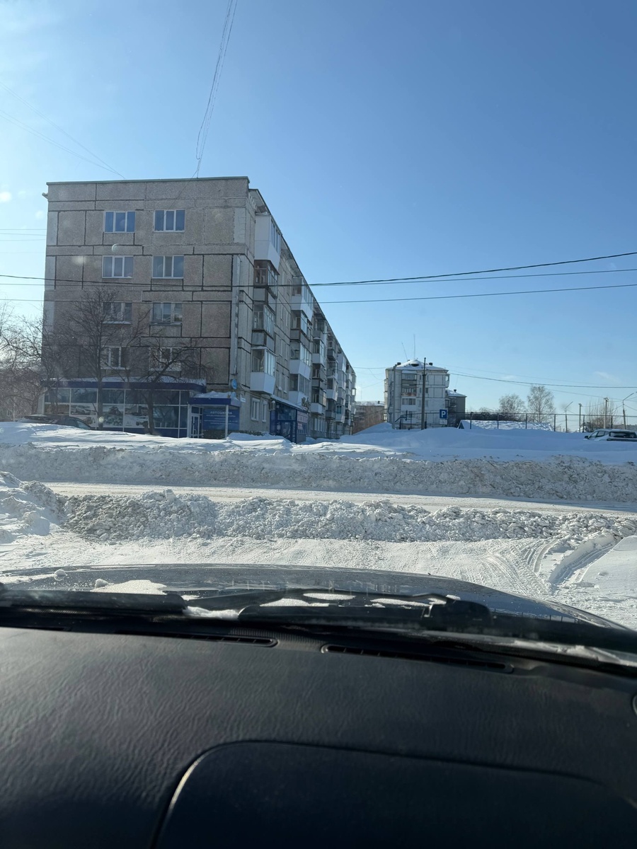 Обстановка на дорогах в Серове. Огромные снежные кучи между полосами даже в центре.