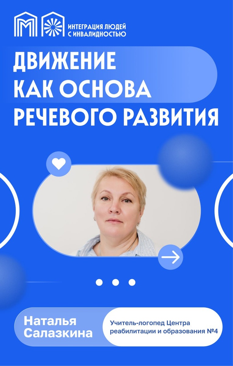 ✅ В коррекционно-развивающей работе с детьми с нарушениями речи важно задействовать не только артикуляционный аппарат, но и всё тело. Движение напрямую связано с формированием речевых навыков: чем лучше развита моторика и координация, тем активнее включаются механизмы речи. Учитель-логопед Центра реабилитации и образования №4 Наталья Салазкина рассказывает, как именно это работает в карточках.