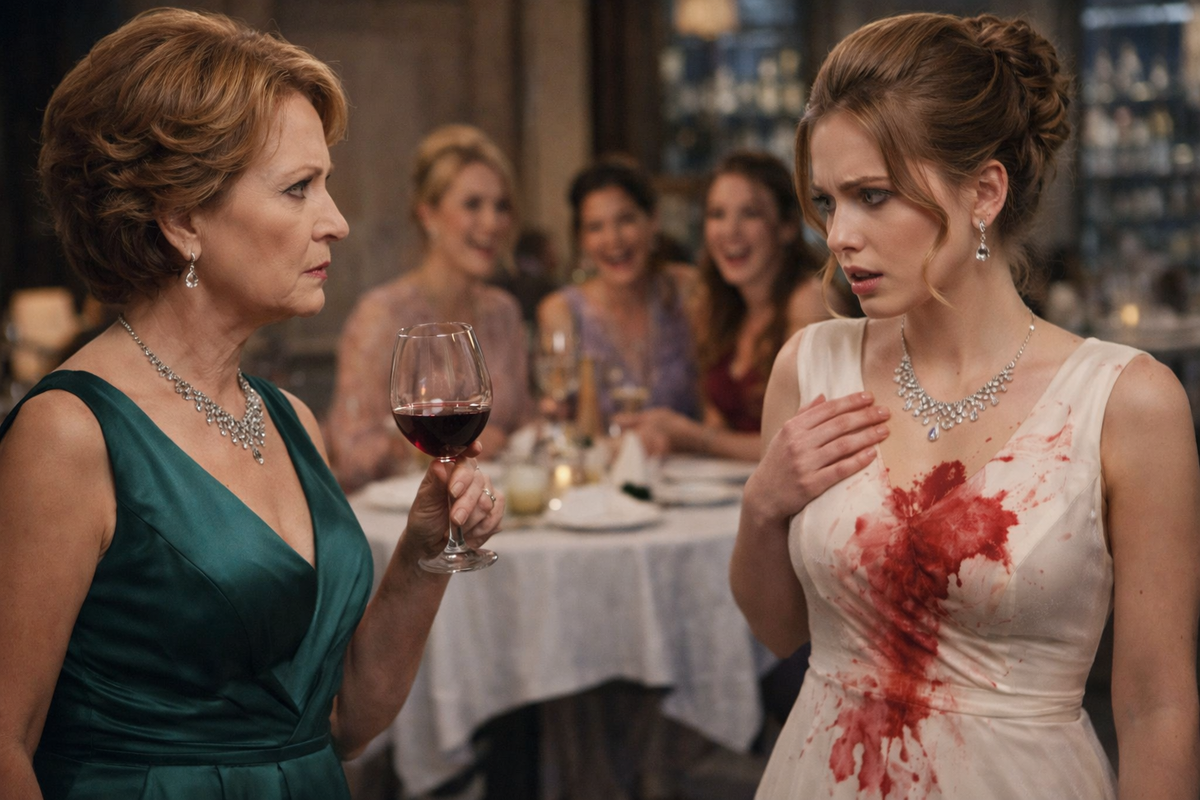 А я стояла в платье, испачканном вином, с мокрой щекой, с салфеткой в руке — и впервые за весь вечер не чувствовала себя униженной.