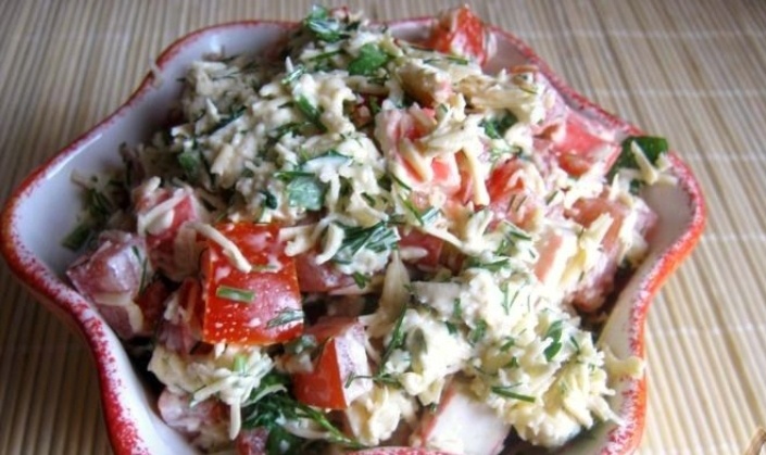 Помидоры нарезать кубиками .