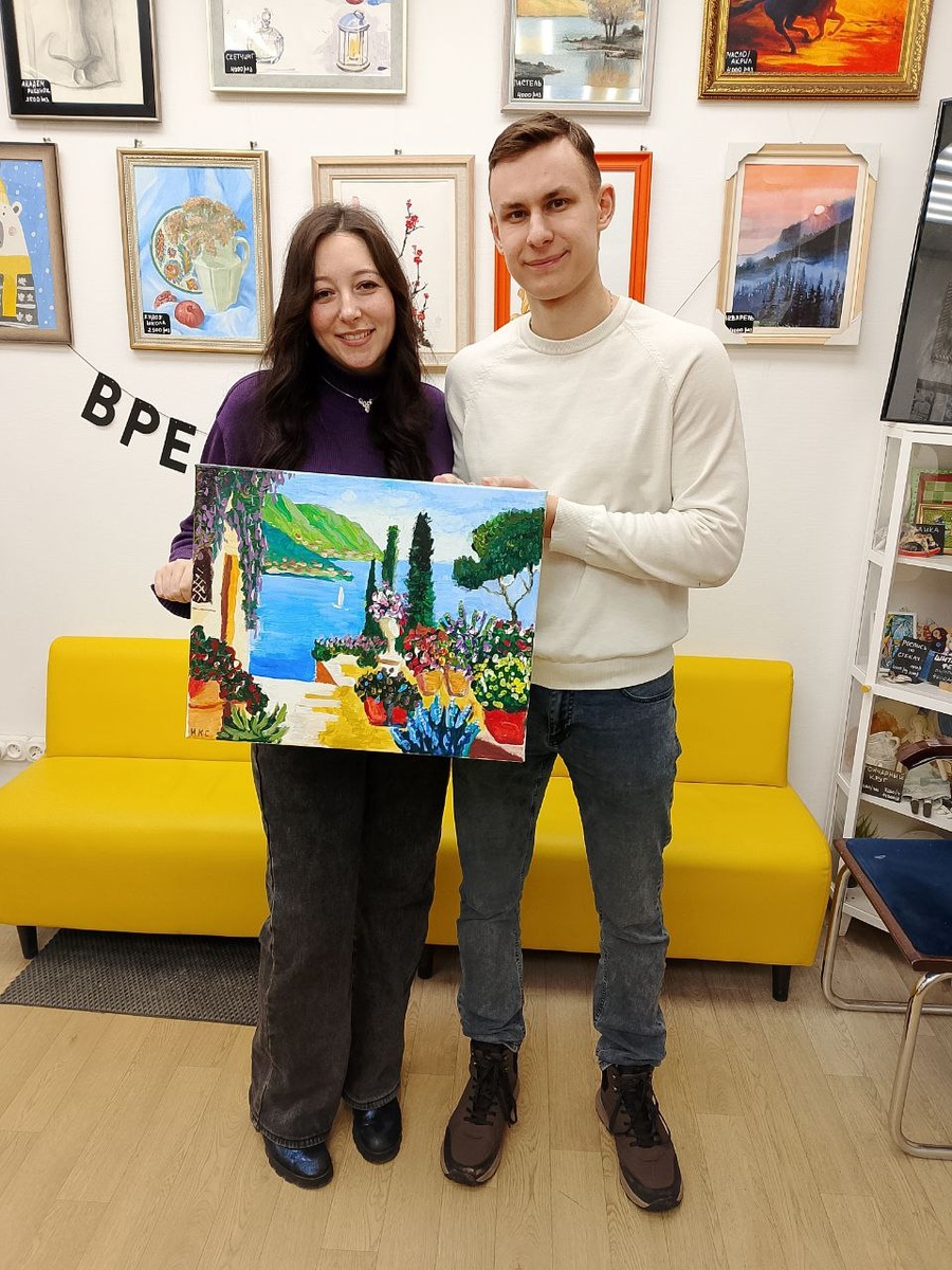 Мы благодарим их за доверие к нашим мастерам и выбор нашей студии. Мастер-класс "Свидание у мольберта" - это ваша возможность побыть наедине друг с другом, написать красивую работу , узнать новое о живописи , и в конце - забрать готовый шедевр домой. Напишите вашу историю на холсте! Мы позаботимся о том, чтобы вы провели время с удовольствием и в уютной атмосфере творчества.