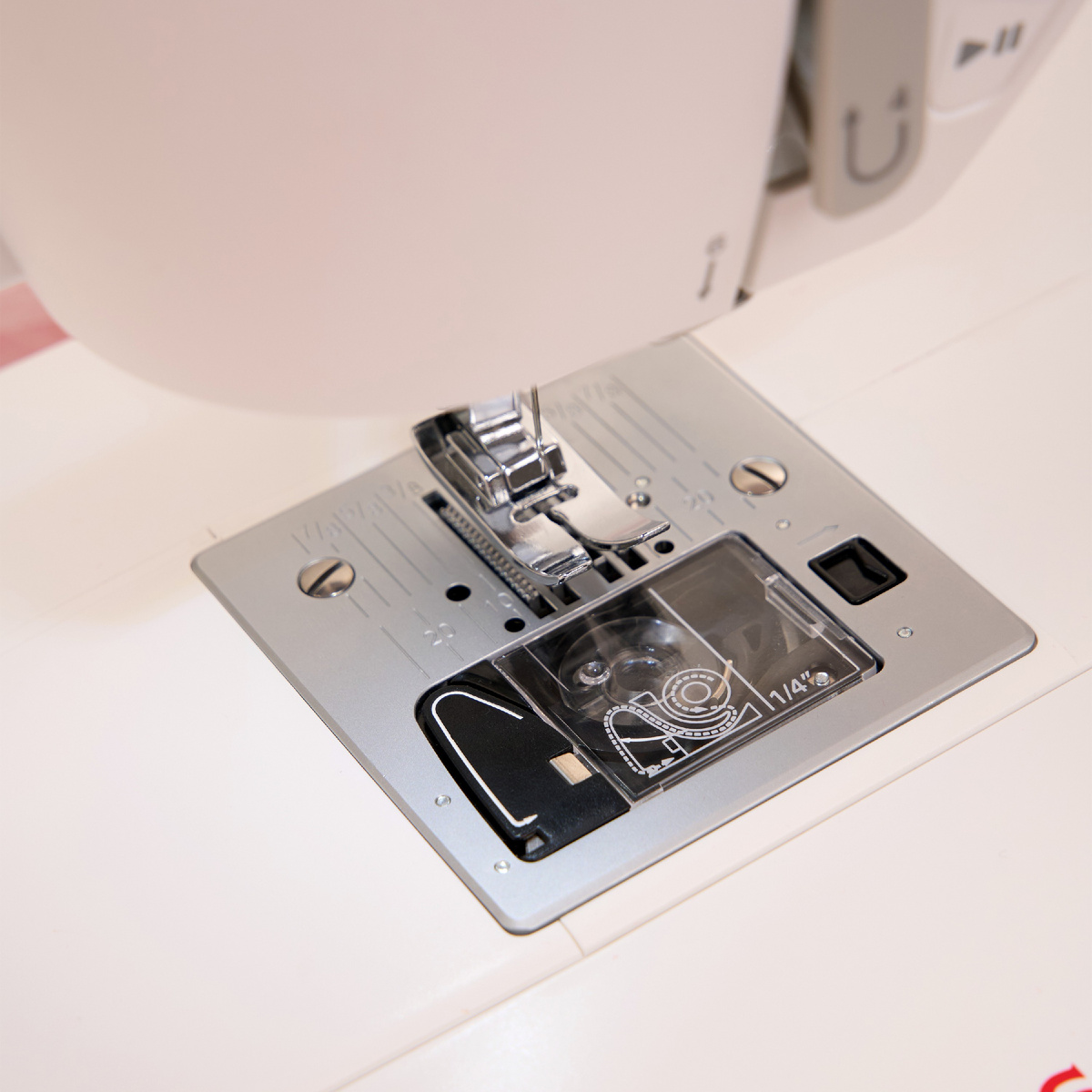 Любые манипуляции в зоне иглы, шпульки или лапки лучше делать только при выключенной машине.