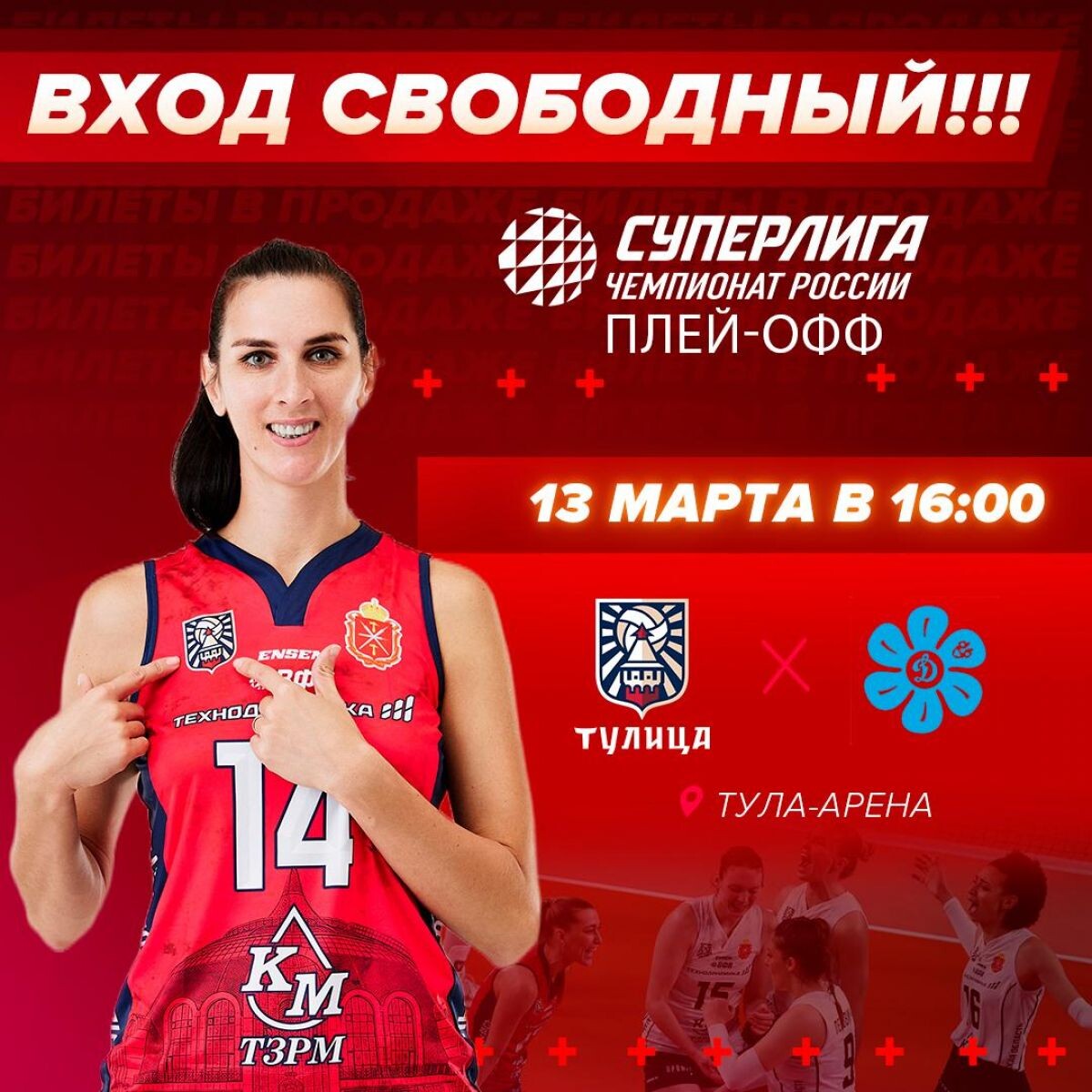 13 марта в Туле состоится вторая игра четвертьфинала плей-офф Суперлиги по волейболу. «Тулица» на своей площадке примет казанское «Динамо-Ак Барс». Вход на этот матч будет свободным. Напомним, что первую игру четвертьфинала плей-офф «Тулица» проведёт на выезде в Казани, 10 марта (начало в 19:00). В случае необходимости третьи матчи серий пройдут 16 и 17 марта. О времени их начала будет сообщено дополнительно Начало игры в Туле 13 марта - в 16:00. 0+