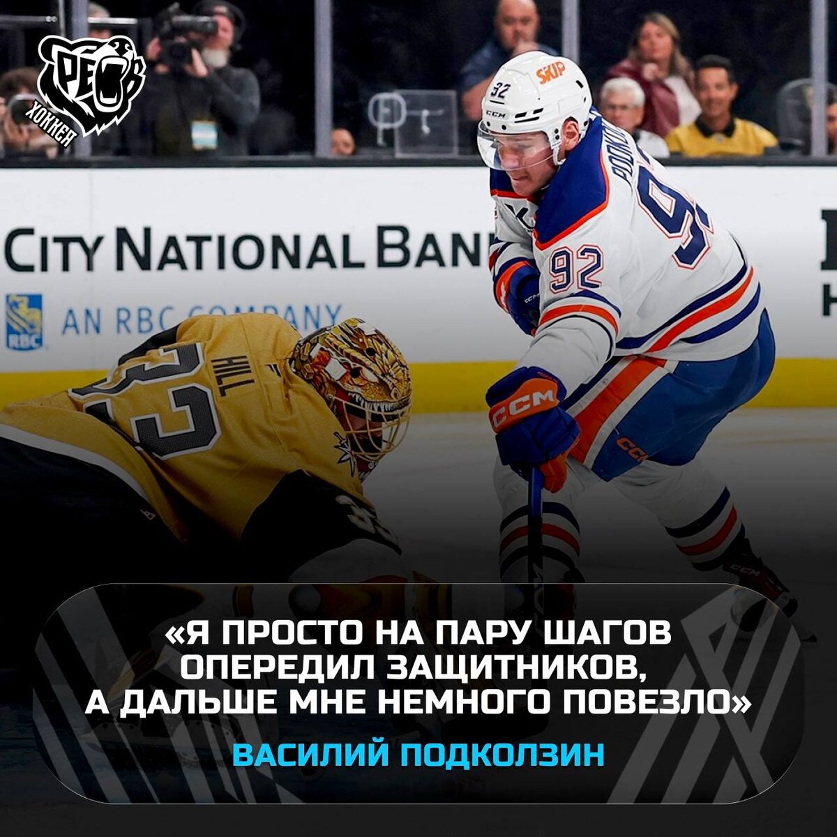 💧 Василий Подколзин оценил свой гол! Нападающий «Эдмонтона» помог команде одержать победу над «Вегас Голден Найтс». Россиянин отметился заброшенной шайбой, эффектно убежав от защитников и выйдя 1 на 1 с вратарём Акирой Шмидом. После матча Василий поделился мыслями о победе и своём голе: «Мы сыграли хорошо в защите и должны продолжать играть так в дальнейшем. Мы продолжаем бороться за место в плей‑офф. Наступила та часть сезона, где мы должны выкладываться на полную и поддерживать друг друга. Мой гол? Я просто на пару шагов опередил защитников, а дальше мне немного повезло. Иногда тебе везёт, стараюсь быть в хорошей голевой позиции» 🐻 Слышишь? ЭТО РЁВ ХОККЕЯ