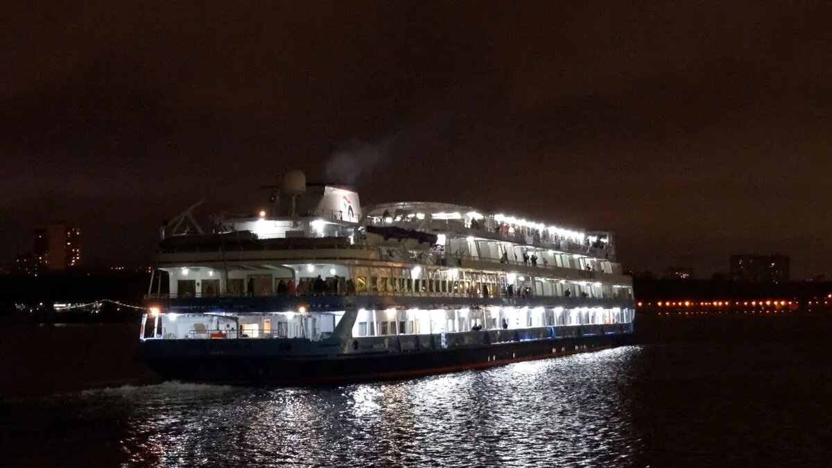 Привет всем любителям наблюдения за речными судами и поклонникам речных круизов по России! Сегодня речь пойдет о моменте, который всегда вызывает особые эмоции у фанатов речного флота. Это финальное отправление круизного лайнера в рейс перед завершением навигационного сезона. Мы запечатлели теплоход «Россия», хорошо известный поклонникам круизов по рекам России. Это судно входит во флот компании «Созвездие». На этот раз мы видим не обычный рейс, а важный момент — завершение навигации 2025 года для этого судна. Четырехпалубный теплоход «Россия» был построен в 1978 году по проекту 301. Ранее судно носило имя «Советская Россия». За десятилетия работы этот пассажирский лайнер стал хорошо знаком любителям речных круизов и тем, кто следит за движением круизных теплоходов на российских реках и водохранилищах. Съемка сделана вечером 17 октября 2025 года на Химкинском водохранилище в Москве. Осенняя темнота уже опустилась на воду, и в этой мрачной атмосфере теплоход «Россия» совершает свой пос