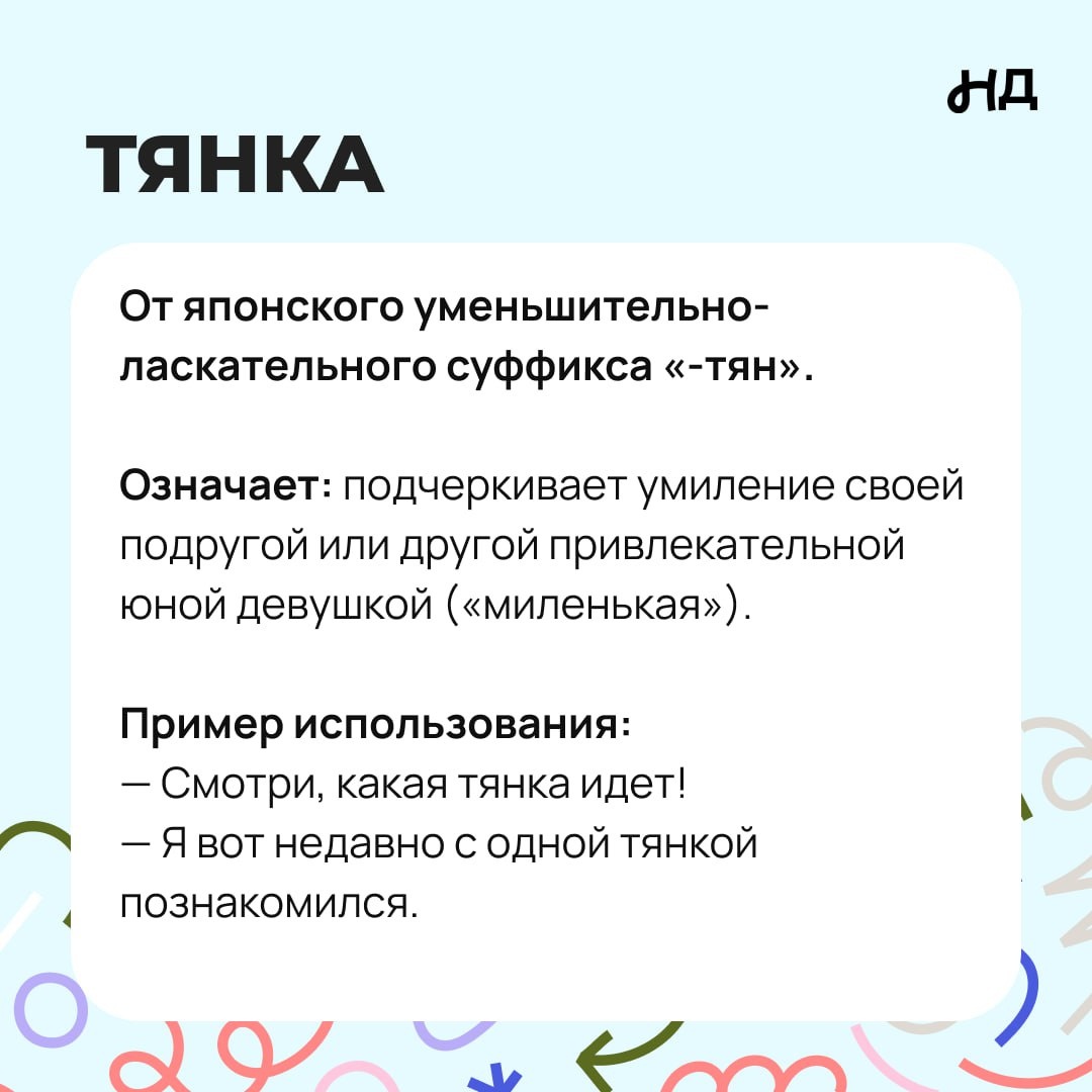 Тянка — слово, которое подростки используют, чтобы подчеркнуть умиление или симпатию к подруге или девочке