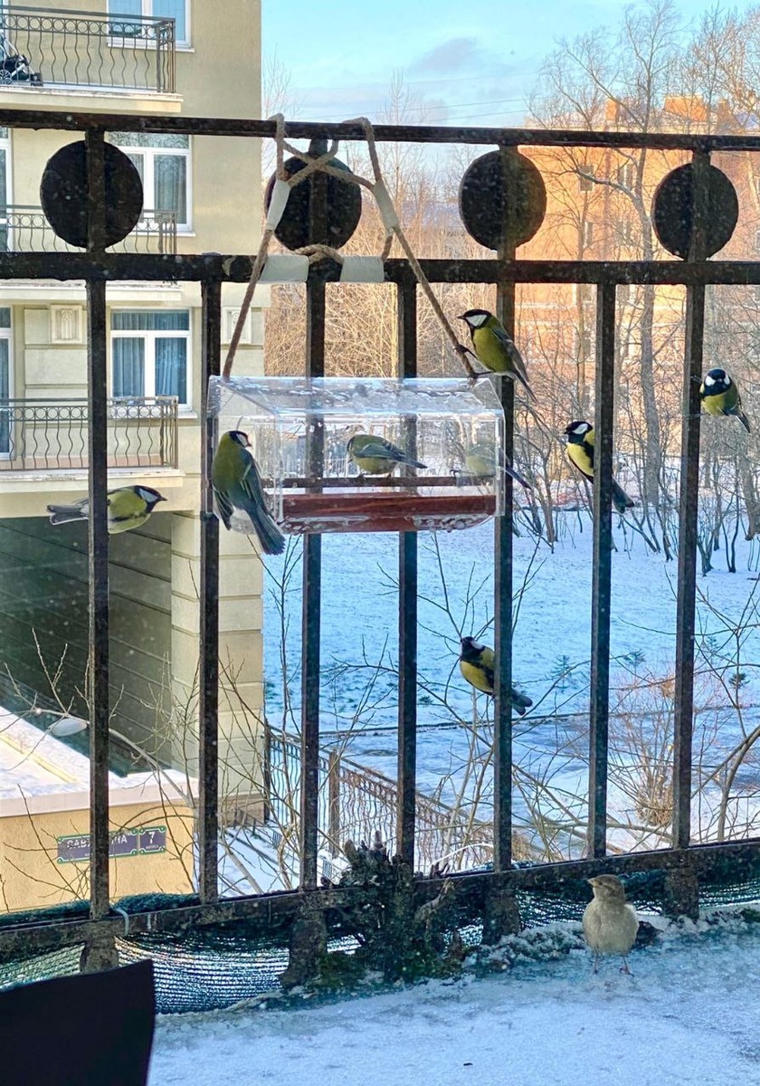 Когда кормушка только вывешена, как новая, синицы могут не сразу понять что к чему, но пройдет время и они разберутся. Кормушка хорошо защищает корм от осадков и благодаря прозрачному корпусу хорошо видно наличие корма. Конечно у владельцев может быть небольшое затруднение в чистке данной модели. Шелуху просто не убрать, для этого можно использовать пылесос с узкой насадкой. А для полной чистки кормушки - отвинчиваются нижние винты, которые крепят дно и кормушку можно полностью помыть с мылом. 📲 Чат в Максе