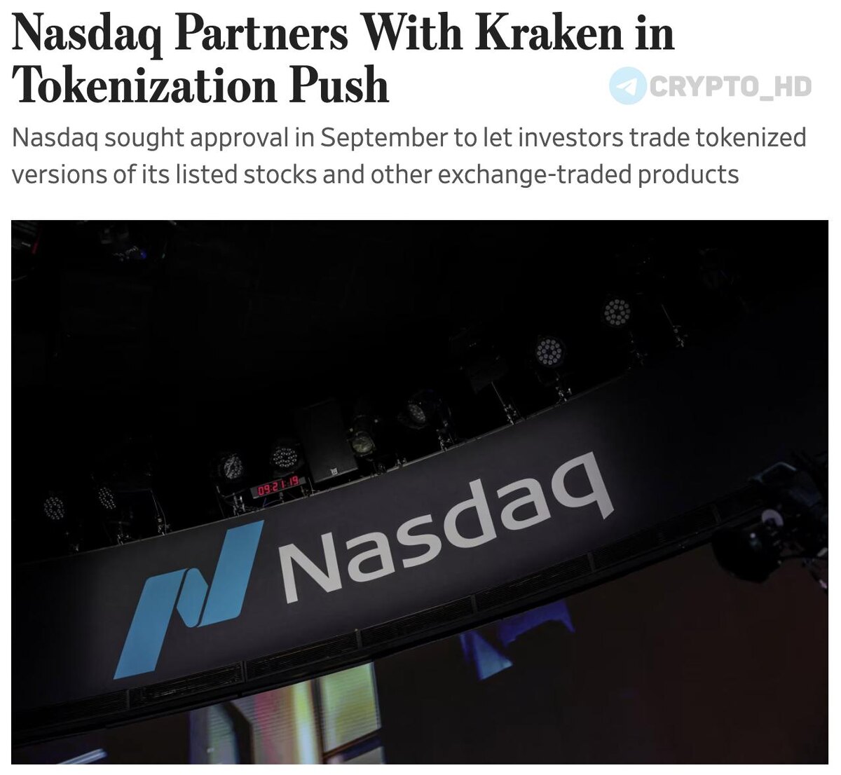 π€ Nasdaq ΠΈ Kraken ΠΎΠ±ΡΡΠ²ΠΈΠ»ΠΈ ΠΎ ΠΏΠ°ΡΡΠ½Π΅ΡΡΡΠ²Π΅ Π΄Π»Ρ ΡΠ°Π·Π²ΠΈΡΠΈΡ ΡΠΎΠΊΠ΅Π½ΠΈΠ·Π°ΡΠΈΠΈ Π°ΠΊΡΠΈΠ²ΠΎΠ² (WSJ