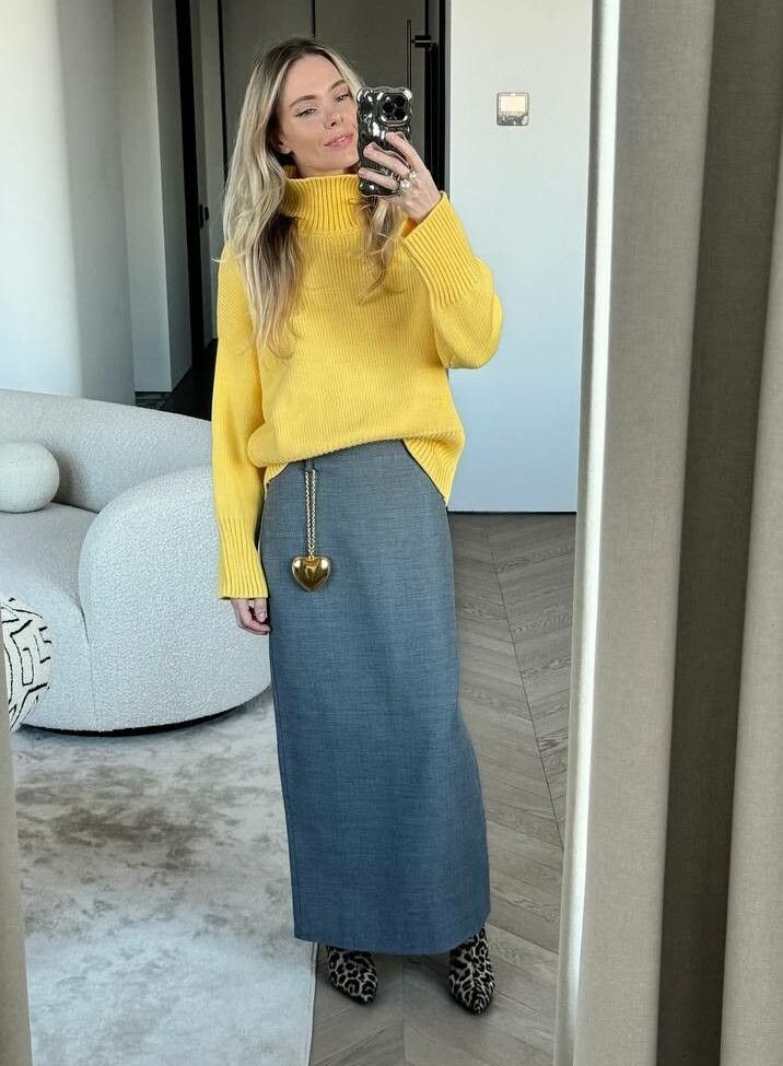 🩶 Длинная серая юбка - одна из самых универсальных вещей в гардеробе. Она легко вписывается в разные стили, от строгой классики до расслабленного кэжуала и актуального минимализма. Нейтральный оттенок делает её идеальной базой для экспериментов с фактурами, слоями и яркими акцентами. В этом сезоне стилисты предлагают сочетать длинную серую юбку с объемными свитерами, структурными жакетами, лаконичными топами и трендовыми аксессуарами, - благодаря этому одна вещь может стать основой для десятков разных образов.
