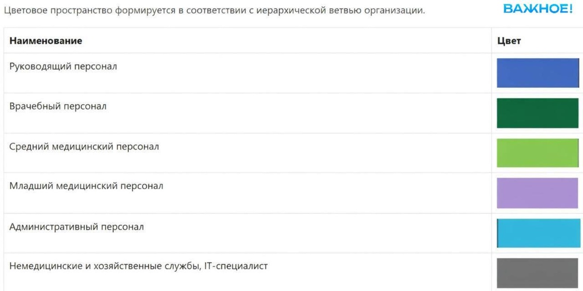 Так, для руководства рекомендована форма фиолетового цвета, для врачей — тёмно-зелёного, а для среднего медперсонала — салатового.