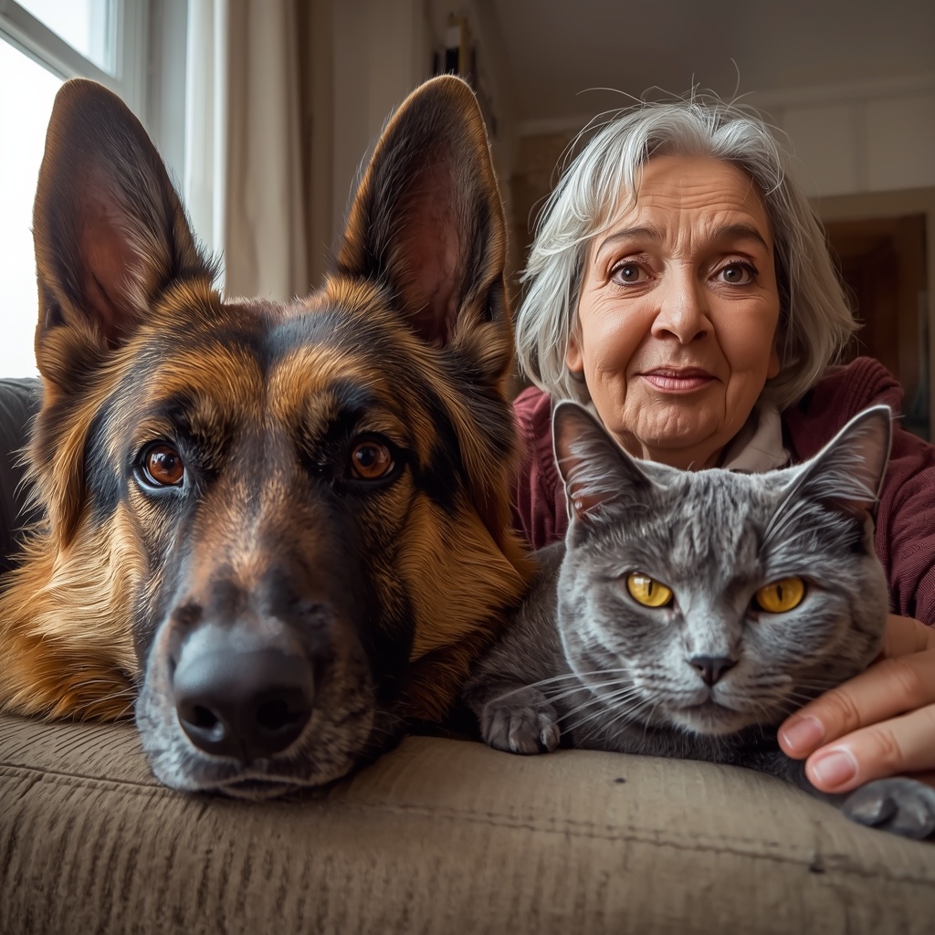 Первый настоящий контакт произошёл дней через десять. Галина Степановна сидела в кресле с книгой, Барон лежал на своём месте у дивана, и вдруг сверху мягко спрыгнула Дымка. Не на пол — прямо рядом с псом. Буквально в полуметре.