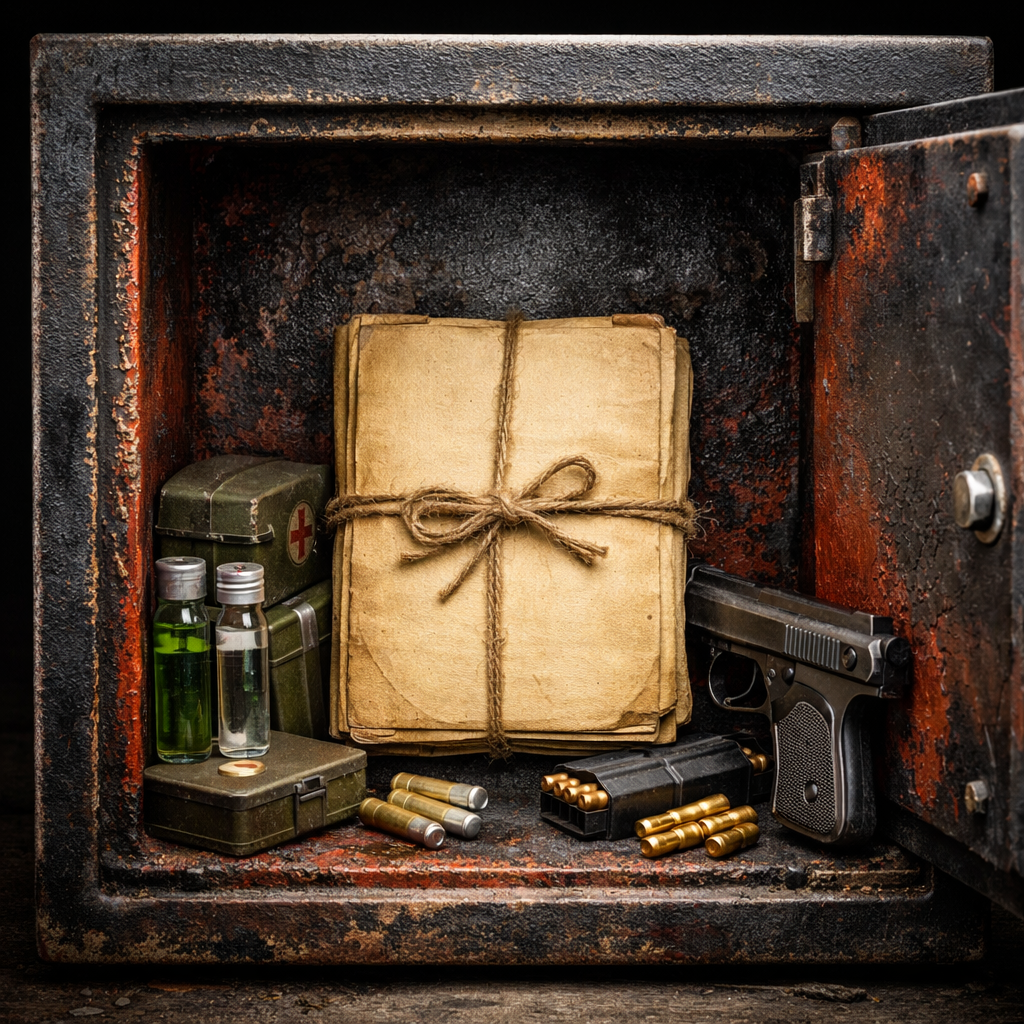 Штопор включил фонарик и начал искать тайник. Через несколько минут он нашел его — небольшой металлический сейф с кодовым замком, спрятанный за старым шкафом.