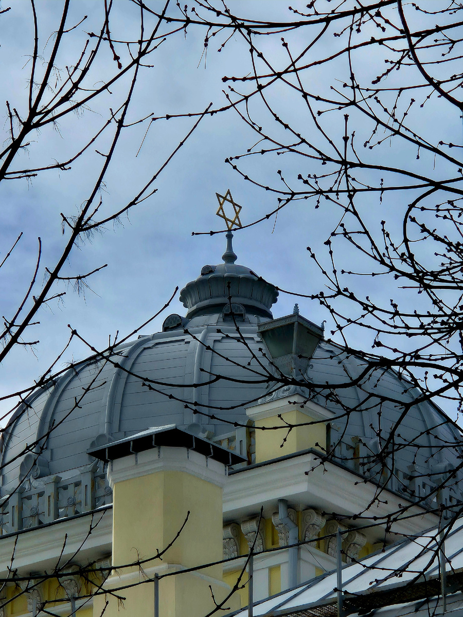 История у синагоги невероятно драматичная. Купол изначально был золотой. Однажды брат царя Александра III, перекрестился, глядя на купол, ему сделали замечание, «Не на то крестишься...», и он приказал его снести. Восстановил купол Лужков, только теперь он не золотой.