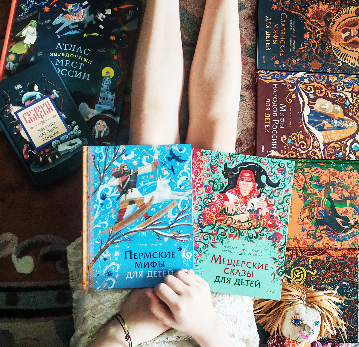 Я с дочкой активно читаю книги из серии «Мифы для детей» издательства МИФ. И два последних издания — Пермские мифы и Мещерские сказы нам очень понравились! Мы уже читали из этой серии: «Скандинавские мифы для детей» Дмитрия Лебедева, «Мифы народов России для детей» Натальи Петровой, «Славянские мифы для детей» Александры Барковой, Надежды Мирошиной, «Татарские мифы для детей» Лейлы Давлетшиной, «Корейские мифы для детей» Анастасии Гурьевой, параллельно изучая тему богатырей и загадочные места России. «Пермские мифы для детей» Павла Лимерова и «Мещерские сказы для детей. От Буры-яги до русалки-чамки» Натальи Серегиной и Надежды Адамович нам пока понравились больше всего. Когда я читала дочке «Татарские мифы для детей» Лейлы Давлетшиной, то обратила внимание на большое количество нечисти и персонажей, стремящихся навредить людям. Жить было трудно, автор рассказывает о том, во что люди верили, но для детской книги получалось мрачно и грустно. Пермские мифы и Мещерские сказы — получились г