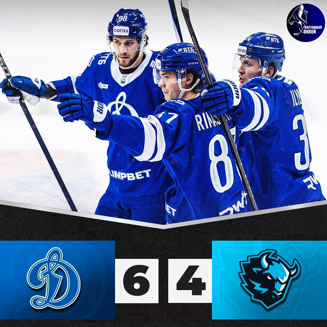 🔵 Динамо Москва - 🦬 Динамо Минск - 6:4 (0:1, 3:2, 3:1) 🦬 0:1 Лайл (Улле, Энэс), 02:18 🔵 1:1 Гусев, 26:56 🦬 1:2 Пинчук (Лимож, Улле), 27:36 🔵 2:2 Калиниченко (Уил, Гусев), 29:08 🔵 3:2 Римашевский (Адамчук, Пыленков), 31:21 🦬 3:3 Галиев (Лимож, Хэмилтон), 37:25 🔵 4:3 Римашевский (Сикьюра, Пыленков), 40:50, ГБ 🔵 5:3 Сикьюра (Пыленков, Шараканов), 50:41 🦬 5:4 Энэс, 57:44 🔵 6:4 Сикьюра, 59:59, ПВ 🥅 Вратари: Подъяпольский - Фукале 📱 Подпишись на НАСТОЯЩИЙ ХОККЕЙ
