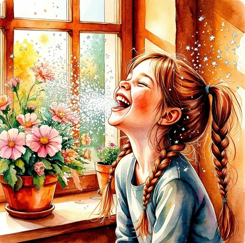 Жила-была девочка. Обычная с виду: две руки, две ноги, косички торчат в разные стороны. Но была у неё одна особенность — смех у неё был не простой, а серебряный.