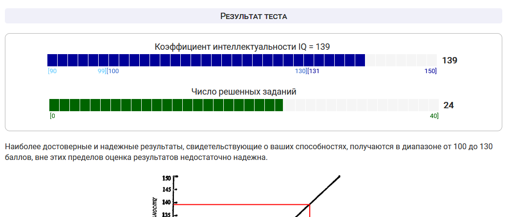 Я не понимаю почему, но у меня 134.5 IQ (по данным с двух сайтов. 139 и 130)