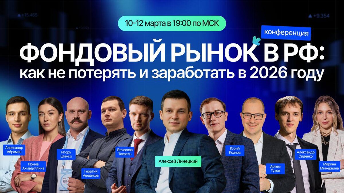 Первое выступление уже завтра 🔥 Завтра в 19:00 по МСК начинается самая масштабная конференция в 2026 году по инвестициям в фондовый рынок РФ. Я организую эту конференцию, поэтому буду выходить в эфир каждый день. А в четверг подведу итоги конференции и выступлю с отдельной, секретной темой. ⏰ Остались последние сутки, чтобы получить бесплатный билет на конференцию. 👉 ПОЛУЧИТЕ БЕСПЛАТНЫЙ БИЛЕТ ПО ССЫЛКЕ До встречи уже завтра!
