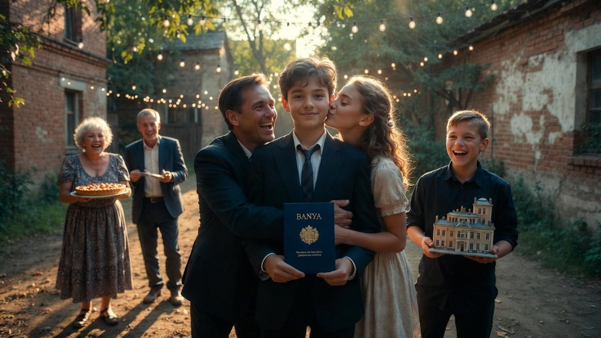 Выпускной бал отгремел, и Ваня вернулся домой — уставший, счастливый, с аттестатом в руках и с ленточкой «Выпускник» через плечо. Во дворе его ждали. Весь двор. Тётя Нина с пирогом, Антоха с фотоаппаратом, Сергеичи с детьми, Егор при параде, Алексей и Катя — сияющие. — Наш выпускник! — закричала тётя Нина. — Умница! Гордость! Ваня обнял всех по очереди. Потом сел за стол, и началось застолье. — Ну, рассказывай, — потребовал Егор. — Как экзамены? Что дальше? — Экзамены хорошо, — ответил Ваня. — Пятёрки по математике и рисованию. Четвёрка по физике, но это ничего. — А куда поступать думаешь? — спросил Алексей, хотя уже догадывался. Ваня посмотрел на отца, на деда, на стены вокруг. — В МАрхИ, — сказал он твёрдо. — На архитектора. Как папа. Тишина повисла на секунду. А потом все заговорили разом. — Молодец! — кричал Антоха. — Правильный выбор! — Я знала! — плакала Катя. — Я всегда знала! — Дело продолжается, — Егор вытер слезу. — Династия. Алексей подошёл к сыну, обнял его крепко. — Спасиб