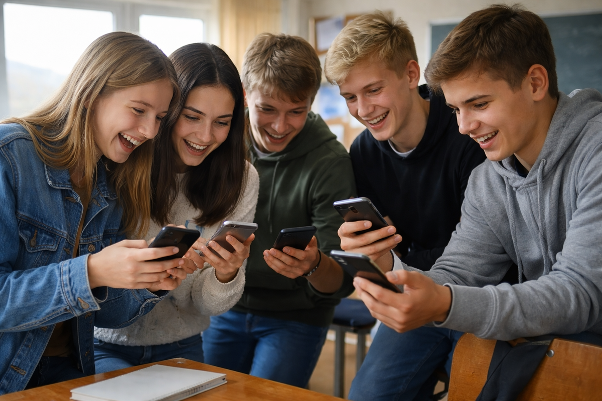 Он посмотрел на телефоны в руках у одноклассников.