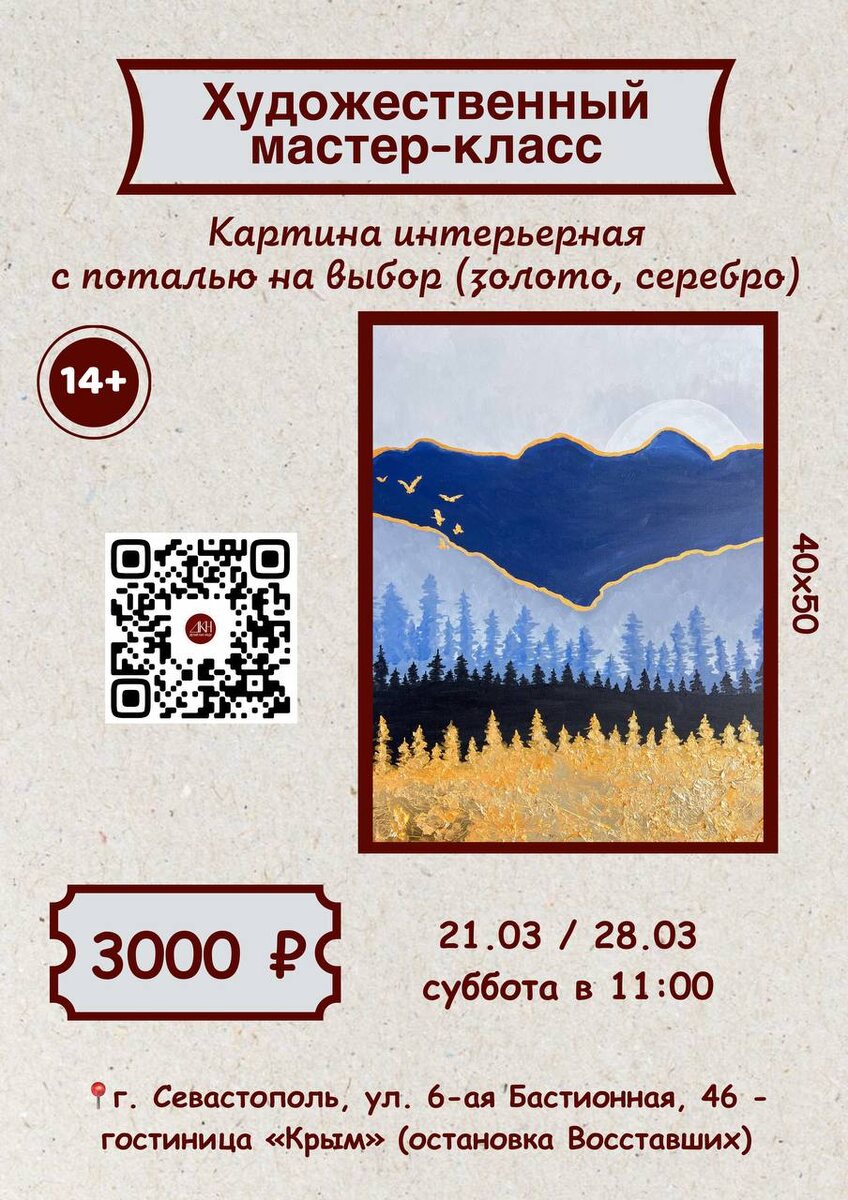 ! 🎨 21 и 28 марта (субботы) в 11:00 мы снова встречаемся в нашем центре на творческий мастер-класс! Будем создавать те самые красивые картины, которые уже украшают дома наших гостей 💙 ✨ Поталь на ваш выбор — золото или серебро. Смотрится дорого и стильно, подходит абсолютно к любому интерьеру! Никаких навыков рисования не нужно — получится у всех. Приходите одна, с подругой, с детьми или всей семьёй 🤗 Все материалы включены, ваша задача — просто получить удовольствие и унести шедевр с собой. 📍 ул. 6-ая Бастионная, 46 - гостиница «Крым» (остановка Восставших) 📅 Даты: 21 и 28 марта, 11:00 🎨 Мест мало! 📎 наш канал с Мастер-классами 📎 наша группа ВКонтакте 📎 отзывы о нас в Яндекс.Картах Запись Telegram, MAX: 📞 +7(979)036-52-42 администратор 📞 +7(979)074-69-04 директор #ДелайКакНадо #МастерКласс #Рисование #Поталь #Творчество #ВыходныеСПользой #УютныйЦентр