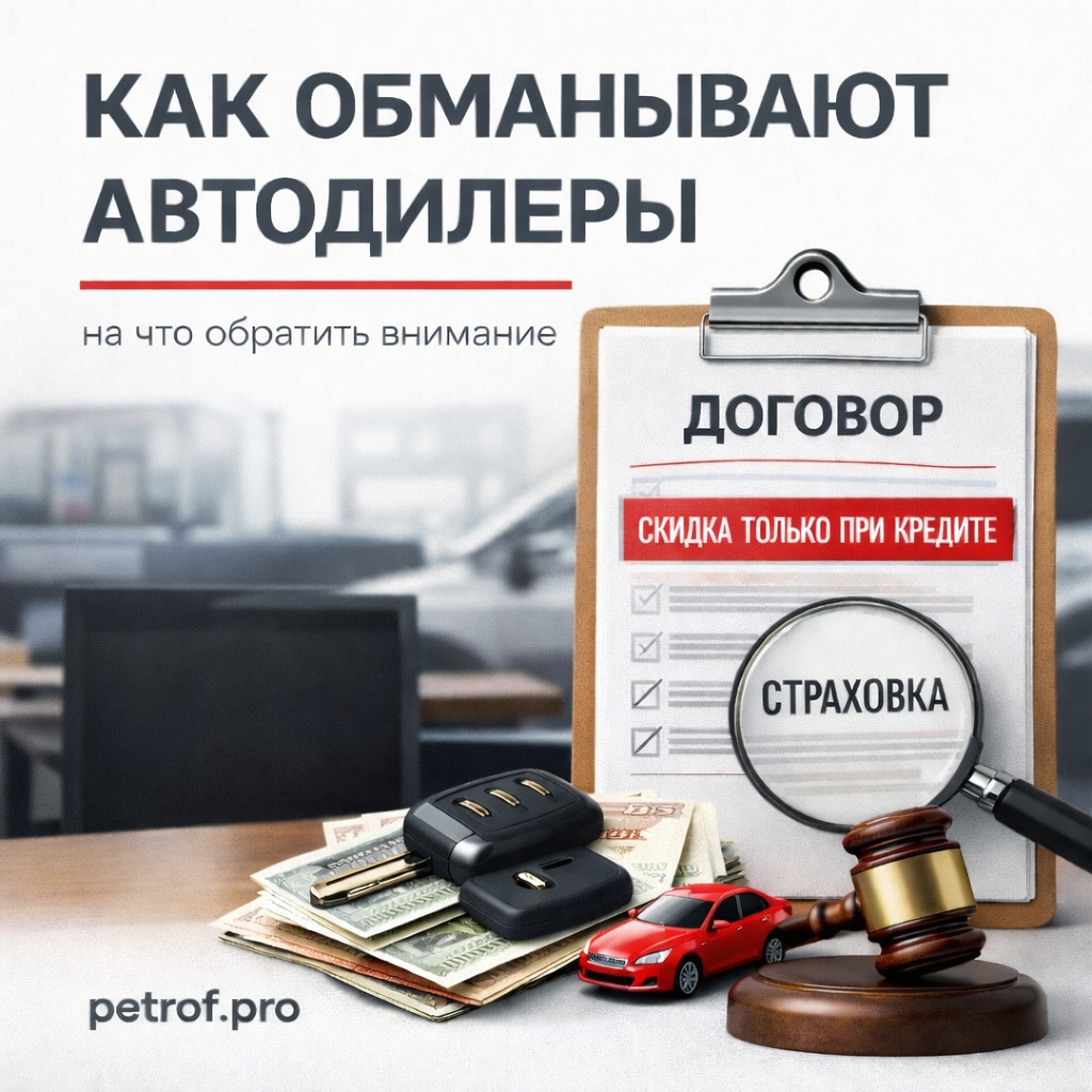 Я подробно разобрал основные схемы обмана автосалонов в отдельной статье —