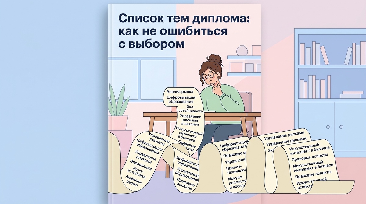 Список дипломных работ — это не приговор и не меню в ресторане, где надо выбрать одно блюдо. Это отправная точка. Берёшь формулировку — и превращаешь её в конкретную, рабочую тему с чётким объектом и понятным исследовательским вопросом.