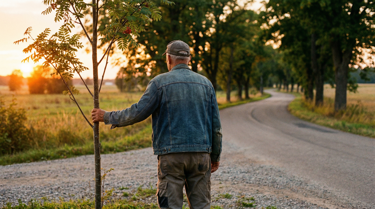 Рябина – первая, та, которую он посадил осенью девяносто шестого – стояла прямо напротив калитки. Ствол толщиной с мою ногу. Гроздья ягод ещё зелёные, но уже тяжёлые. Рядом – клён с раскидистой кроной. Дальше – берёза. Потом липа. И так – в обе стороны вдоль трассы, сколько хватало глаз. Ровная зелёная стена. Настоящая аллея.