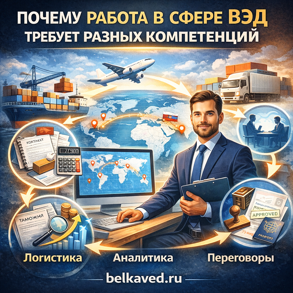 Особенность этой профессии заключается в том, что она объединяет сразу несколько направлений. Специалист по ВЭД должен разбираться в международных контрактах, логистике, таможенных процедурах и финансовых расчетах.