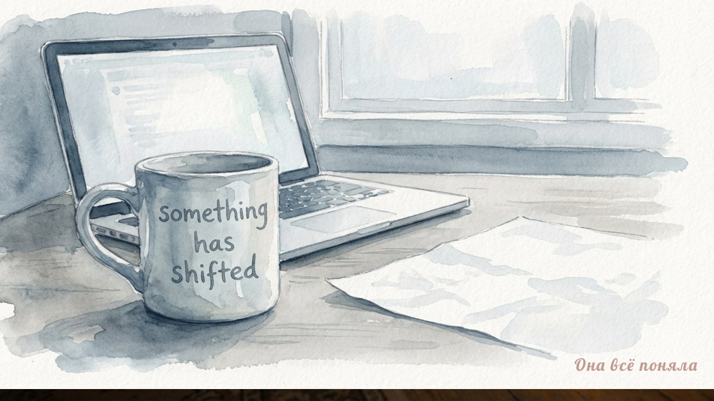 Кружка стояла на краю стола. Лена подвинула её чуть дальше — и сразу почувствовала что-то похожее на стыд. За что — объяснить не могла. Лена работала бухгалтером в строительной фирме уже девять лет. Приходила за семь минут до начала, держала карандаши заточенными, никогда не оставляла чашку в раковине офисной кухни. Порядок снаружи — это был её способ не трогать то, что внутри. На кружке было написано «#1 бухгалтер». Андрей подарил три года назад — принёс в коробочке, с бантиком, радостный. Лена поставила на полку и сказала: «Спасибо, хорошая». Не поцеловала. Отвернулась к ноутбуку. Потом жалела. Потом перестала. Потом кружка сама перебралась на рабочий стол — и с тех пор Андрей наливал в неё кофе каждое утро. Это была её кружка. Это был его ритуал. Когда это началось — она уже не помнила. Просто в какой-то момент обнаружила, что кофе стоит на столе раньше, чем она успевает дойти до кухни. Сначала говорила «спасибо» и пила. Потом заметила, что говорит «спасибо» быстрее, чем успевает чт