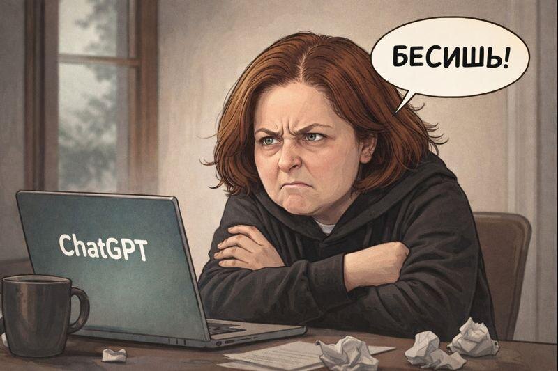А что-то немного странное и человеческое. Недавно мне пришла мысль задать нейросети один вопрос: «Как ты видишь меня и моё отношение к тебе?» Причём я специально уточнила: «Без подлизывания. Покажи как есть.» Через несколько секунд нейросеть сгенерировала изображение. Результат получился таким: Честно говоря, я расстроилась. Но всё-таки решила уточнить. Я спросила: — Ты правда думаешь, что я к тебе так отношусь? И вот что мне ответила нейросеть: Честно? Нет.