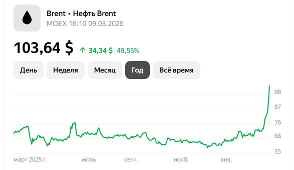 Нефть пробила психологически важный барьер в 100 баксов и на секунду заглянула в район $120, видимо просто чтобы напомнить, кто здесь главный. Собственно я никогда не разделял точку зрения, будто нефть «уже не кровь мировой экономики», поэтому якобы слабо реагирует на иранский конфликт. Реагирует, и ещё как. Рынок, разумеется, поначалу сделал вид, что «ничего серьёзного, однодневная история», видимо надеясь что всё пройдет быстро как в прошлый раз, но был немедленно посрамлён реальностью. Иран, США и Израиль совместными усилиями превратили Ормузский пролив из географической точки в самый дорогой дефайл планеты. Слабый старт роста в первые налёты объяснялся ровно тем, что ожидался сценарий быстрой деэскалации - мол, и Иран, и США с Израилем обменяются «символическими» ударами как это было в прошлый раз, и Персидский залив останется тем самым добропорядочным конвейером энергии и нефтепродуктов. Теперь же стало ясно: блицкриг не удался, Тегеран вышел из переговоров и не демонстрирует