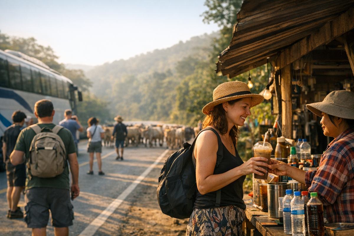 Помню дорогу в северной части Таиланда, когда водитель остановился посреди трассы не потому, что сломался автобус, а потому что впереди перегоняли коров. Все вышли, никто не возмущался, кто-то закурил, кто-то купил на обочине ледяной кофе. В пакетной поездке такое сочли бы накладкой. А у меня это осталось в памяти как один из самых теплых эпизодов. Потому что ты не потребитель услуги в этот момент, а участник чужой, настоящей, повседневной жизни.