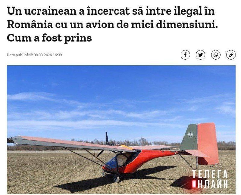 » Румынские СМИ пишут о необычном нелегале из Украины — 31-летний гражданин Незалежной прилетел в страну на мотодельтаплане. Сотрудники румынской погранслужбы задержали его в населенном пункте Фратэуцкие Веки, что в округе Сучава. Возбуждено уголовное дело по статьям о незаконном пересечении границы и управлении транспортом лицом, не имеющим необходимых документов. Пожелаем храброму летуну посидеть в румынской тюрьме, а не отправиться домой в лапы военкомов. 🚲 Подпишись на Телега Online в MAX