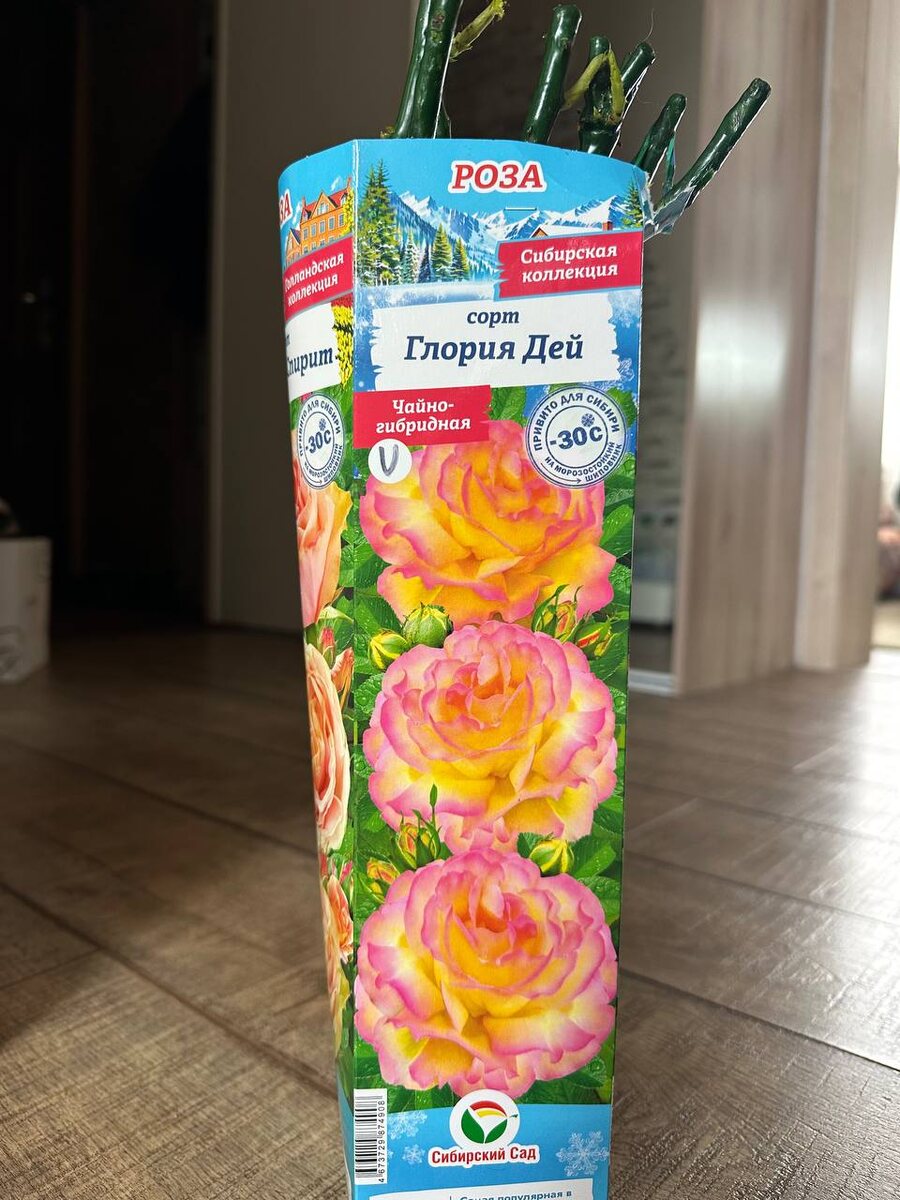 10 марта. Ну что тут скажешь... получать подарки всегда приятно, особенно если сам попросил. Накануне женского праздника сын решил проявить инициативу и спросил: «Что подарить маме?» Обычно я отвечаю что-то типа «ничего не надо, у меня всё есть!» Ведь правда, часто задумываюсь: а чего мне действительно хочется? И каждый раз прихожу к выводу, что желаний то у меня нет, вроде всего хватает. Но на этот раз я подумала-подумала и решила пошутить слегка серьёзно: пусть купит мне одну маленькую штучку — всего-навсего саженец розы красного цвета. Хочу красную розу! Недорого для его кошелька, мне приятно и для него услада, что мама довольна. И началось веселье... Зная цвет будущей королевы сада, сын отправился на поиски идеальной розы. Конечно, ничего подходящего не нашлось, зато продавцы предложили отличный вариант — чайно-гибридную розу Глория Дей. Красивая штуковина, ароматная, ну и что, что вы хотели красный цветок, а получили розово-жёлтую? Главное, чтоб росла хорошо, а там уж разберёмся