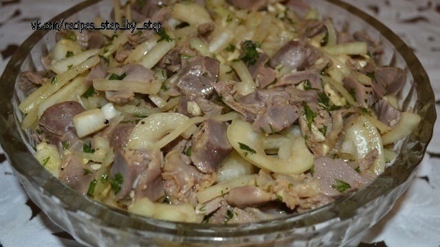 полкило куриных желудочков;