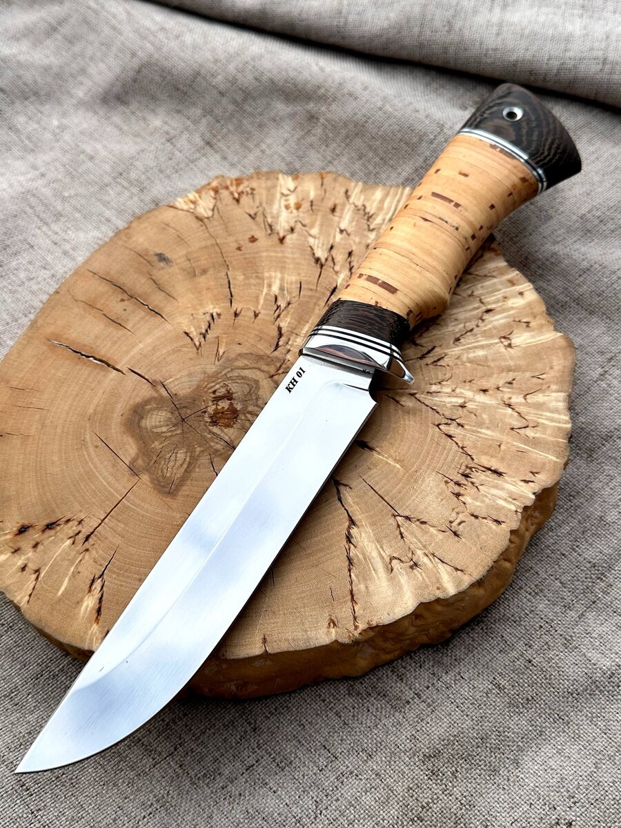 ! 🔪 Сталь КН-01 с криообработкой — прочная на излом, долго держит заточку, обеспечивает агрессивный рез. 🔝 Твердость клинка — 70 HRC: идеален для сложнейших задач на охоте, рыбалке или в походе. 💪 Спуски от середины клинка делают нож устойчивым к боковым нагрузкам — надежность даже при силовой работе. Рукояти: Рукоять — береста: тепло в руке и приятный тактильный эффект. Все рукояти — анатомические, удобно ложатся в ладонь. ✂️ Заточка — "в бритву": готовы к работе сразу из коробки! В комплекте — ножны из натуральной кожи. Есть вариант формованных ножен (+8000 руб.). 💰 Цена за нож — 18.600 руб. Подходит для: - Охотников, рыбаков, туристов - Подарка мужчине, который ценит настоящий инструмент 📲 Для заказа: Telegram: [@Nazarklinokbot](https://t.me/Nazarklinokbot) Телефон: +7 (910) 134-38-31 🔗 Подробнее — [nazarklinok.ru](https://nazarklinok.ru) #кузницаназарова #авторскийнож #ручнаяработа #стальКН01 #подарокмужчине #охота #рыбалка