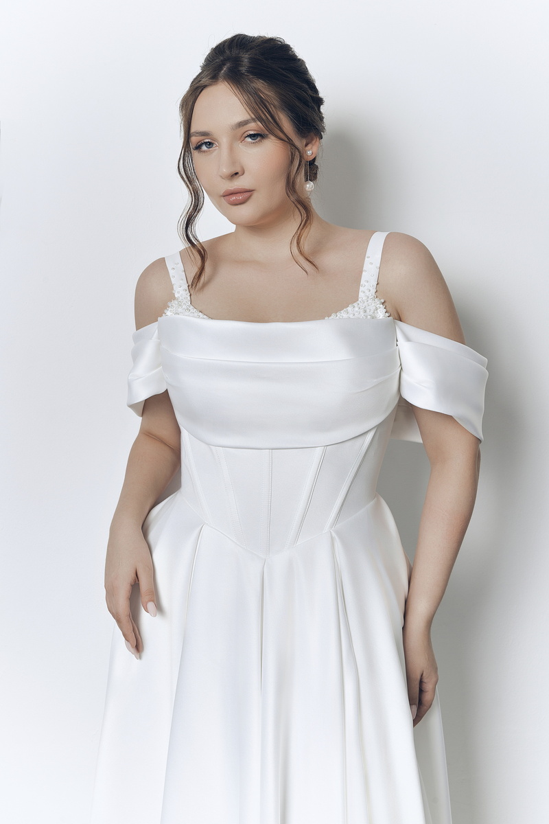 Невесты говорят это так, как будто это недостаток, которые нужно скрыть. Как будто свадебное платье создано только для идеальных пропорций😐 На самом деле платье требует правильного кроя. ❤️Большая грудь - это не проблема, если правильно подобран фасон платья. Грамотный корсет и продуманная конструкция делают силуэт собранным и элегантным, а не перегруженным. Выбор свадебного платья для девушек с пышной грудью, действительно требует внимания не столько к визуальному образу, сколько к конструктивным особенностям наряда. Модели без корсета не смогут обеспечить поддержку, которая вам необходима в течение всего дня. Поэтому выбирайте платья с внутренним корсетом, который держит грудь на месте и поддерживает её естественную форму. Ищите свадебное платья с косточками (регилином), которые идут не только спереди, но и по бокам (обычно от 6 до 12 косточек в корсете). Они создают «чашу» и не дают груди «уплывать» подмышки. 1.Треугольник стройности: Плавное декольте (лодочка, овальное или V-об