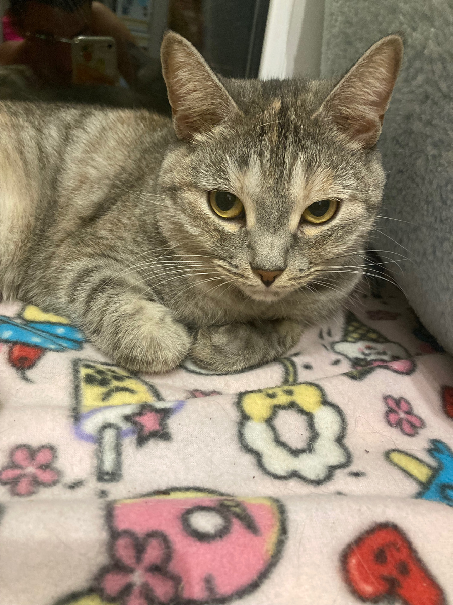 Осенью 2019 года мы забрали эту серую мышку-малышку и она провела свой первый день с нами в отеле, где жил тогда Артем. Позже она стала законной жительницей съемной квартиры, жила там на полных правах с разрешения хозяйки (в отличии от других кошачьих друзей), но и сносила все замечания от квартирной хозяйки, т.к. она не знала о других кошках 🤫 (Кнопу и Мурчика мы успешно прятали) 🫣