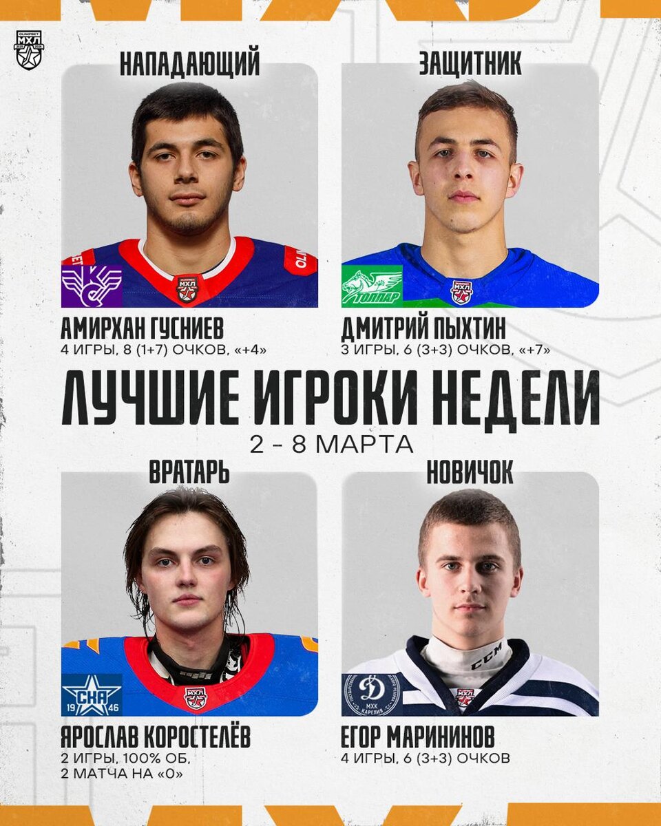 Лучшие игроки 26-й недели OLIMPBET регулярного чемпионата МХЛ