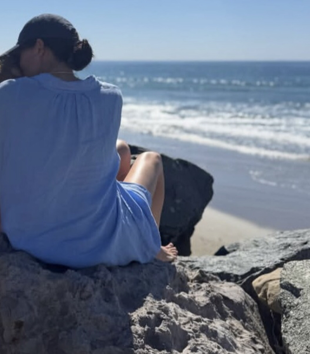 На фото на камне у воды сидит наша русалка Андерсена герцогиня, укрыв максимально от любопытных взглядов человечества кого-то в розовом, подразумевая , что мы верим- это седьмая в очереди на трон;