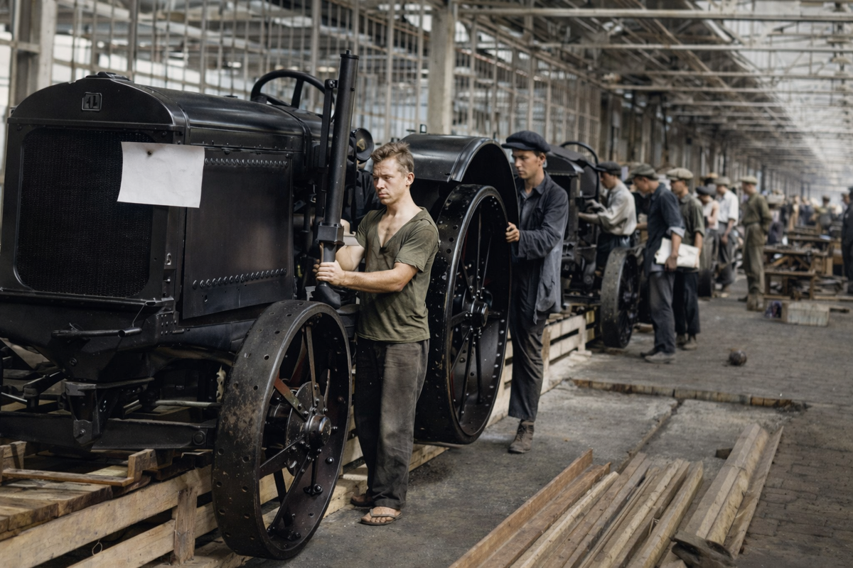 Летом 1926-го на северной окраине Сталинграда, где до этого росли арбузы, торжественно забили первый колышек будущего завода. Чертежи делало бюро Альберта Кана - того самого американца, который проектировал заводы для Ford. Сумма контракта оценивалась в 30 млн вечно зелёных, а поставляли станки и материалы больше сотни компаний из США. По факту весь завод собрали за океаном, потом разобрали, перевезли и заново поставили на Волге за шесть месяцев. Первый трактор СТЗ-1 выехал из ворот 17 июня 1930-го - это была переделка американского McCormick Deering 15/30. За десять лет завод разогнался так, что к лету 1940-го с конвейера сошло более 230 000 машин. Это больше половины всех тракторов, работавших тогда на полях страны. А еще раньше, в 38-м, гусеничный СТЗ-НАТИ взял Гран-При на Всемирной выставке в Париже. С началом войны вместо тракторов пошли Т-34 - до трехсот машин в месяц. Конвейер замолчал лишь 13 сентября 1942-го, когда стреляли уже прямо на территории цехов. После восстановления,