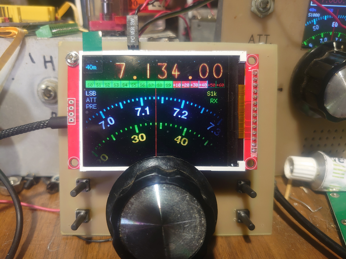 Построено устройство на недорогом американо-китайском микроконтроллере ESP32-WROOM 32, синтезаторе частоты SI5351, TFT дисплее с управлением по шине SPI, внешней EEPROM и декадном декодере переключателя ДПФ.