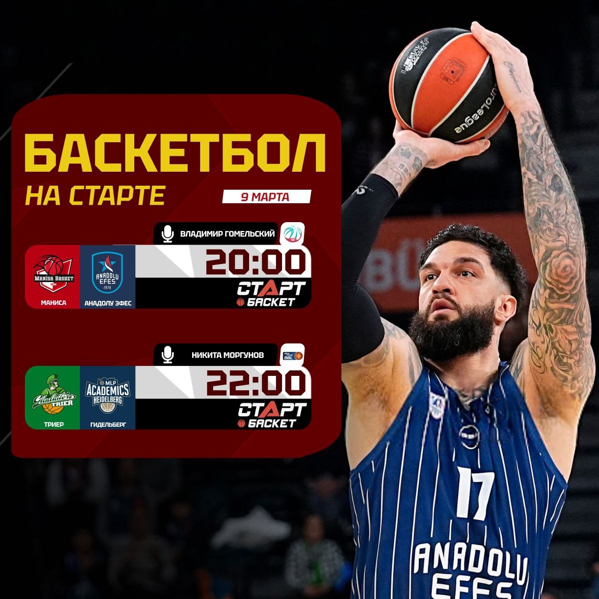 ! Начнем его в Турции, где «Эфесу» необходимо побеждать на выезде «Манису», чтобы упрочить отрыв в борьбе за последнюю путевку в плей-офф. В Германии у команд свои задачи. «Триер» бьется за плей-ин, а «Гидельберг» ведет борьбу за выживание в Бундеслиге. Кто сегодня окажется чуть ближе к цели, решит очное противостояние. Смотрим лучшую игру с мячом на телеканале «Старт» и платформе TVSTART.RU 🖥 Подписывайся на ТВ СТАРТ в MAX📲