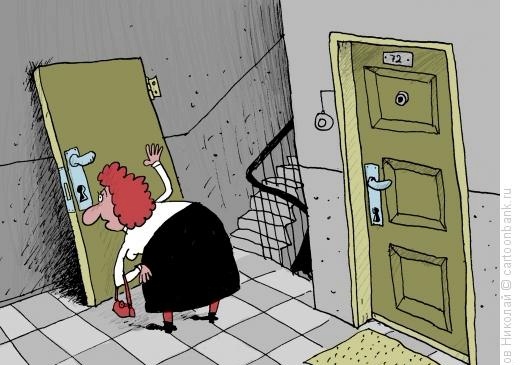 Возвращается муж из командировки, звонит в дверь Жена не открывает. Начинает дубасить кулаками. Ноль. Приоткрывается соседняя дверь, оттуда бабуля: