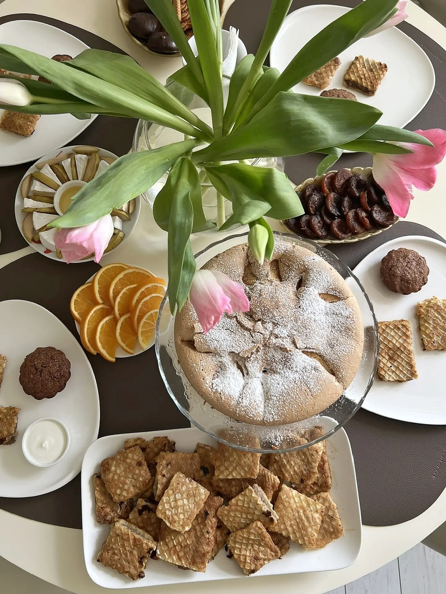 Милые дамы, от всей души поздравляю вас с прошедшим праздником Весны! Счастья вам и здоровья, легкости и прекрасного настроения, море цветов и океан собственной неотразимости. Будьте любимы и любите! С 8 Марта вас! Как отмечали праздник, чем гостей и близких потчевали? Может, в ресторан ходили? Мы накануне праздника ходили на праздничный концерт в БКЗ, а сам праздник отмечали дома. Покажу вам наш праздничный стол и две новинки в меню. Дана сделала невероятно нежные кейкпопсы, а я совершенно потрясающие сытные вафли. Всем понравилась моя идея украсить кексы цветочками🌸. Получилось очень по-весеннему. Делюсь рецептом вчерашних вафель, который узнала от коллеги 1️⃣ Покупаете готовые вафельные коржи 2️⃣ Делаете или покупаете фарш на котлеты (я крутила сама: говядина 80%+ свинина 20%, лук, соль, перец, чеснок, батон) 3️⃣ Берете корж, выкладываете на него фарш, накрываете другим коржом 4️⃣ Оставляете минут на 15 (я не оставляла — не было времени) 5️⃣Режете на кусочки 6️⃣ Взбив